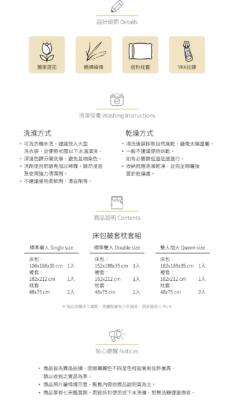 組合內含:床包 1 入、薄被套 1 入、枕套 2 入。