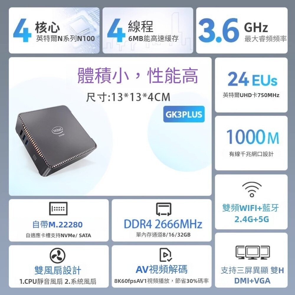 Win11四核辦公家用電腦 N150迷你電腦 Intel省電N系列CPU WIN10升級 N100 10W超省電 便當盒
